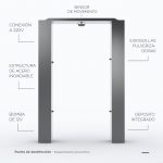 Equipamiento preventivo diseñado para la sanitizacion de personas al ingreso de un espacio controlado. Pulveriza una solucion desinfectante de manera automatica.